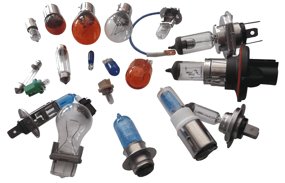 Faro alta/baja halógeno, Niebla halógena, Direccional/posición halógeno, Freno/reversa halógeno, Miniatura/tablero.